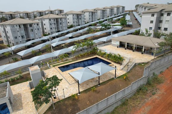 Condomínio com área de lazer completa, piscina, churrasqueira, salão de festa com churrasqueira, quadra, playground, segurança.