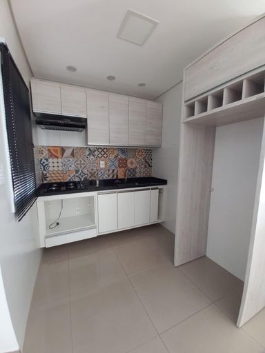 Contém 2 dormitórios sendo 1 suíte e com guarda roupa planejado, sala com painel de televisão planejado e com sacada gourmet com churrasqueira e pia, cozinha planejada, banheiro social, lavanderia com planejado, garagem descoberta para 1 veículo.