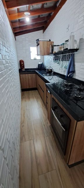 Contém 2 dormitórios, o quarto de casal com planejado, quarto de solteiro com ar condicionado, sala e cozinha conjugadas, cozinha com planejados, lavanderia coberta e separada, quintal, garagem para 1 veículo.