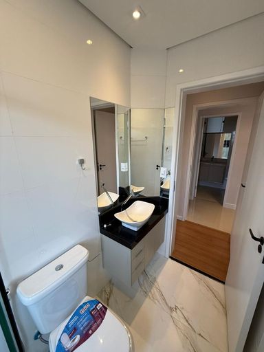 Contém 3 dormitórios sendo 2 suítes e os 3 dormitórios com móveis planejados, sala com painel de televisão, cozinha com armário planejado, lavanderia com armário planejado, sacada com varanda gourmet e pia, elevador, garagem para 2 veículos.