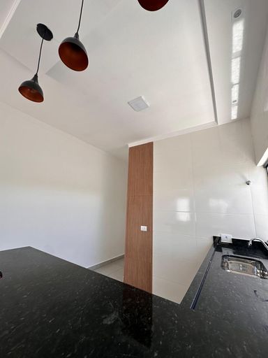 Contém 2 dormitórios sendo 1 suíte com área de claridade, sala e cozinha conjugadas, banheiro social, lavanderia coberta e com corredor, garagem para 1 veículo.
