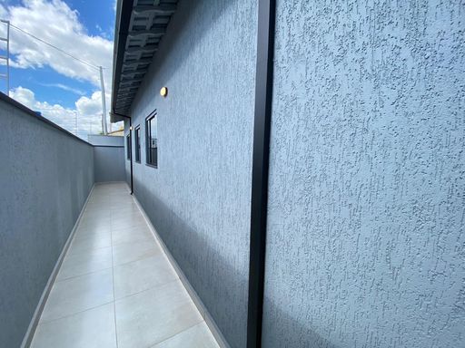 Contém 3 dormitórios sendo 1 suíte, sala e cozinha conjugadas, sala com rebaixamento de gesso e luz de led, banheiro social com box, lavanderia coberta e com um pequeno quintal, área gourmet com churrasqueira e pia, garagem coberta para 1 veículo.
