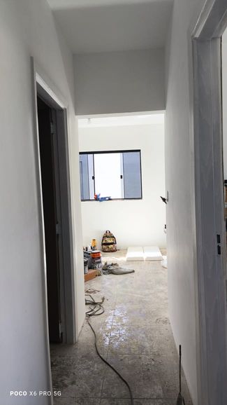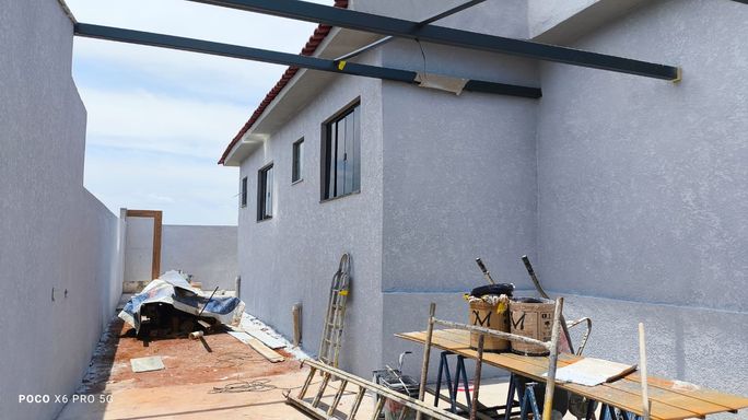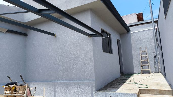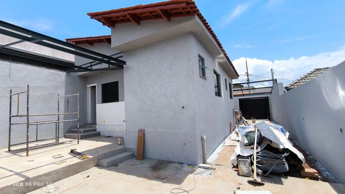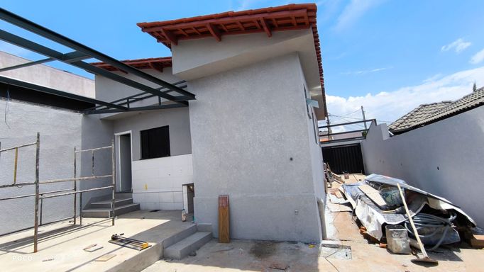 Contém 3 dormitórios sendo 1 suíte, sala e cozinha conjugadas, banheiro social, lavanderia coberta, churrasqueira, quintal, garagem para 1 veículo.