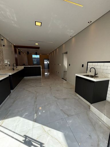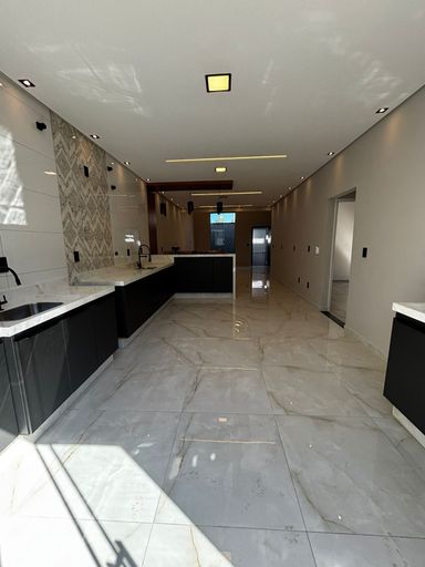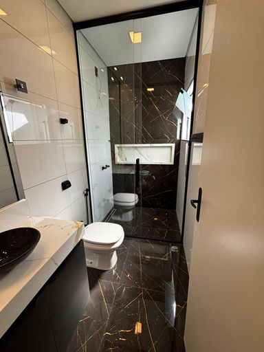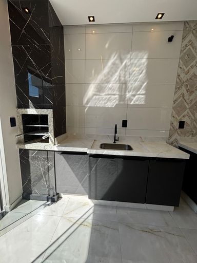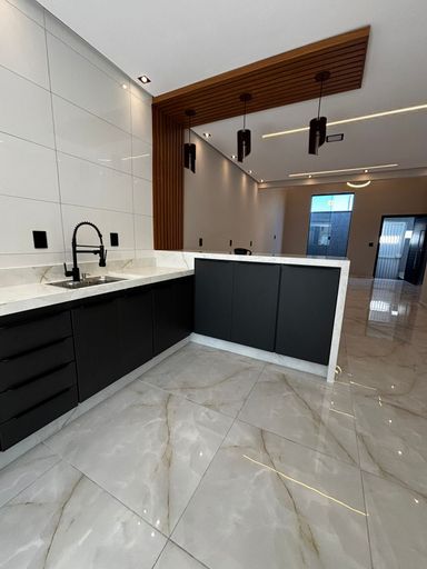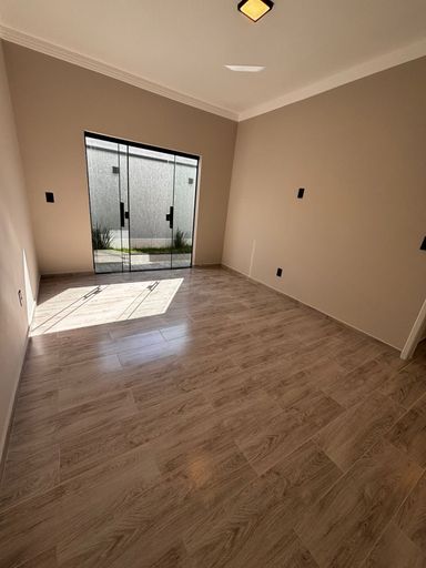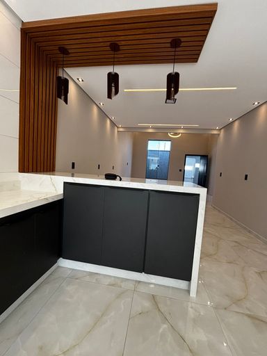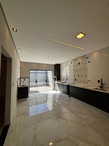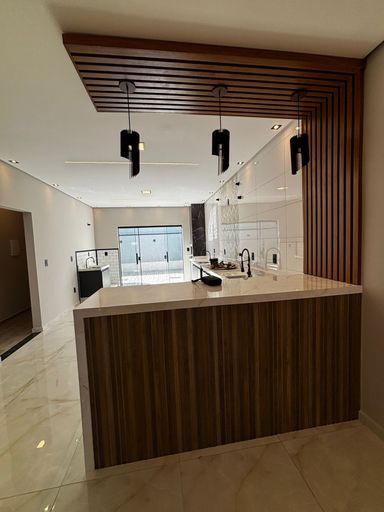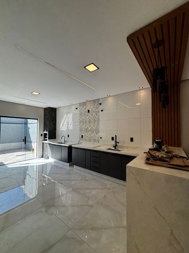 Contém 3 dormitórios sendo uma suíte com closet e uma varanda no dormitório, sala com rebaixamento de gesso e led, cozinha com armário planejado, banheiro social com box e armário planejado e espelho, área gourmet com churrasqueira e pia com planejado, lavanderia coberta, quintal bem amplo, banheiro pro lado de fora que da acesso a área gourmet, garagem coberta para 2 veículo.