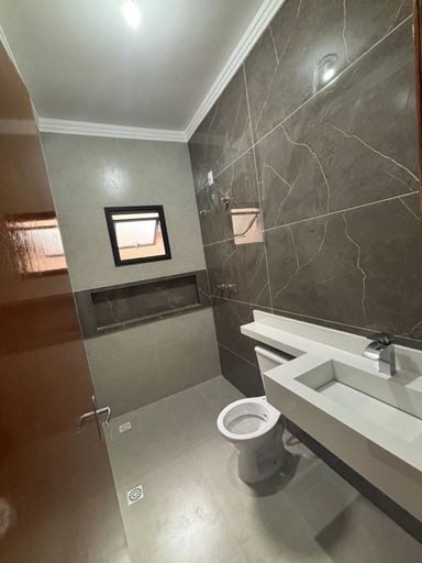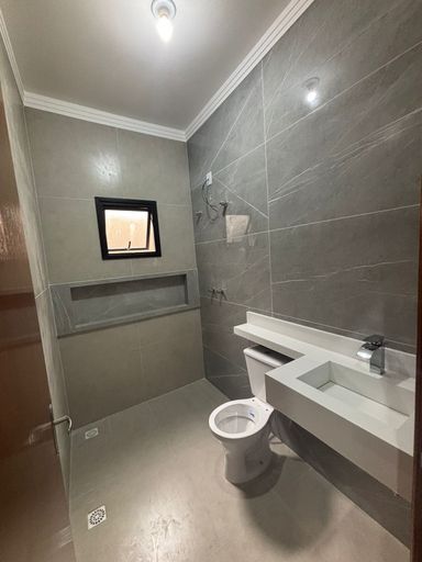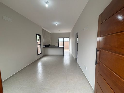 Contém 3 dormitórios sendo 1 suíte com closet, sala e cozinha conjugadas, banheiro social, lavanderia coberta e quintal, garagem descoberta para 2 veículos.
