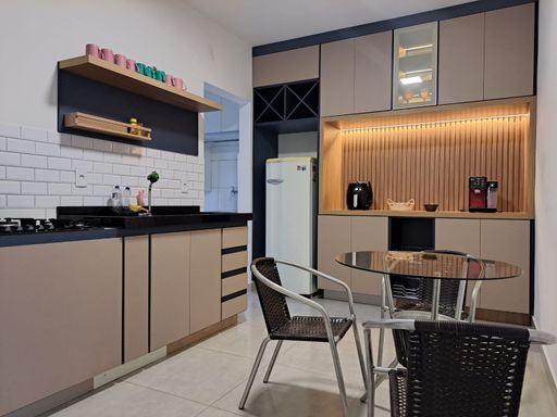 Casa com Área Total 120m e Área Privativa 96m² com uma sala com móveis planejados em detalhes em ripado bem ampla, cozinha com armário planejado, 03 Quartos, sendo 01 suíte com guarda roupa planejado, banheiros com acabamento de alta qualidade, todos com box. área de serviço coberta, com armário planejado e um quintal privativo. 01 vaga de garagem descoberta.