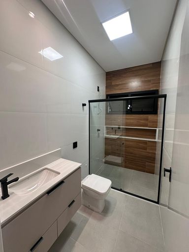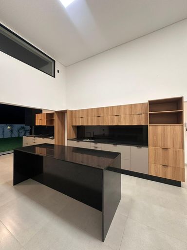 Contém 3 dormitórios sendo 3 suítes com móveis planejados, uma com closet, sala e cozinha conjugadas, cozinha com planejados, 1 lavabo, banheiro social com box e com armário planejado, área gourmet com churrasqueira, pia e armário planejados, lavanderia coberta e armário planejado, amplo quintal, 4 vagas de garagem sendo 2 coberta e 2 descoberta.
