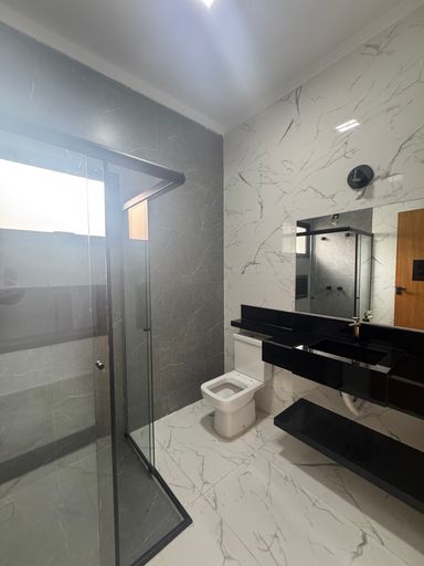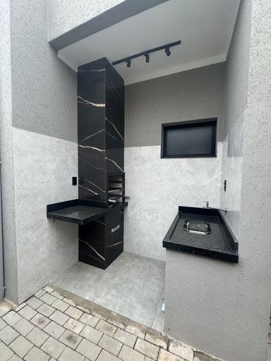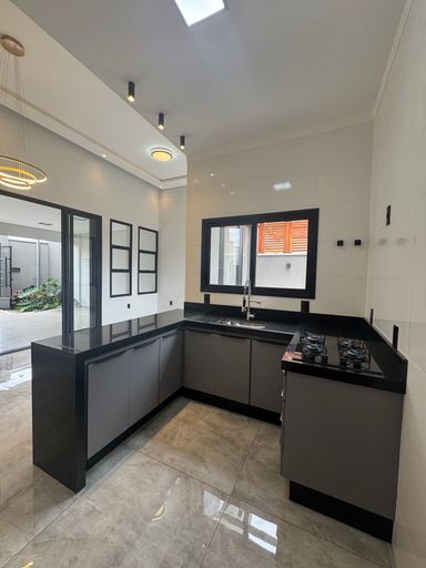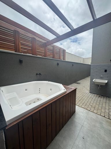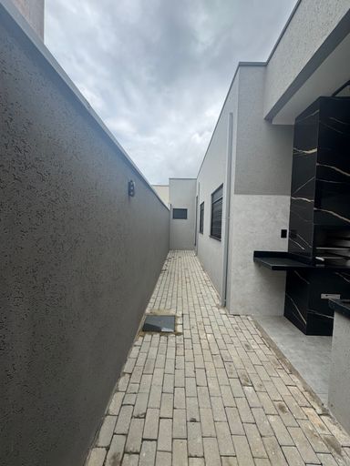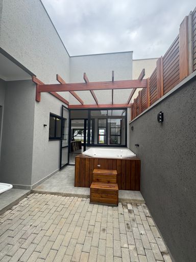 Contém 3 dormitórios sendo 1 suíte, todos com persianas nas janelas automática, sala de tv e sala de jantar com pé direito alto, integrada com a cozinha, cozinha com planejados, bancada e fogão cooktop, banheiro social, lavanderia, área gourmet com churrasqueira, lavabo, quintal com deck de madeira e spa para 6 pessoas, iluminação toda em led, interfone, cerca elétrica, paisagismo, garagem coberta para 2 carros e 1 moto.