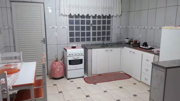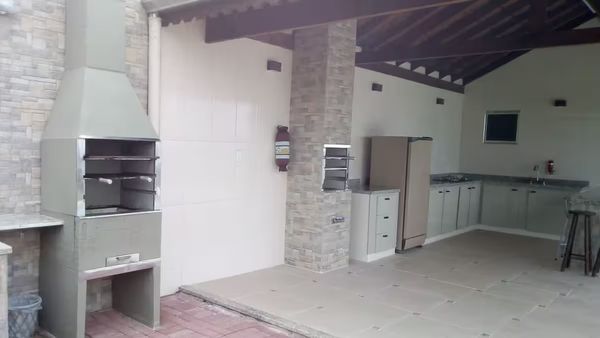 Casa com 3 dormitórios, 2 banheiros, sala ampla, cozinha interna e cozinha caipira com fogão a lenha. Conta com uma área gourmet completa, equipada com 2 churrasqueiras e fogão cooktop, perfeita para receber família e amigos.
