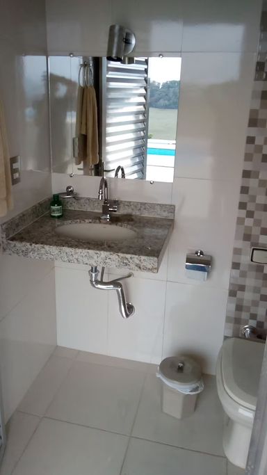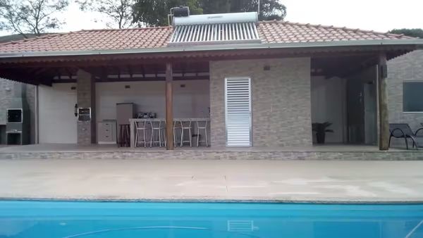 Dispõe ainda de aquecedor solar, com água quente inclusive no chuveiro externo da piscina. Imóvel totalmente mobiliado, com 2 TVs, 2 geladeiras e todos os móveis, pronto para morar.