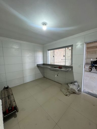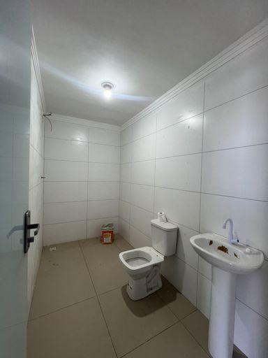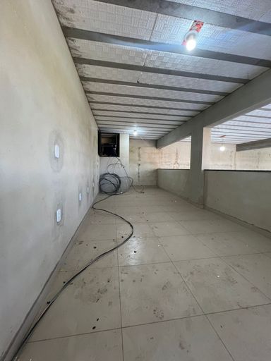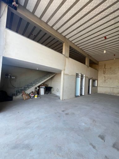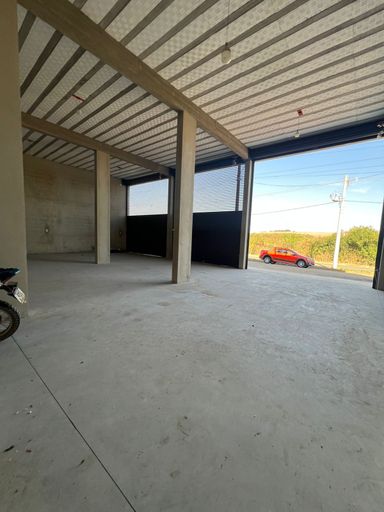Contém 1 cozinha, dois banheiros sociais, mezanino e escritório, portas automáticas, portão social.