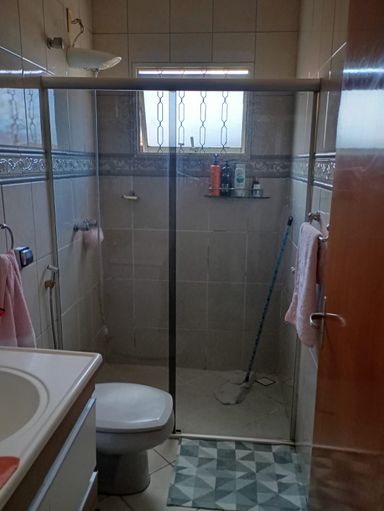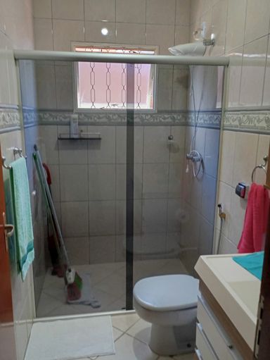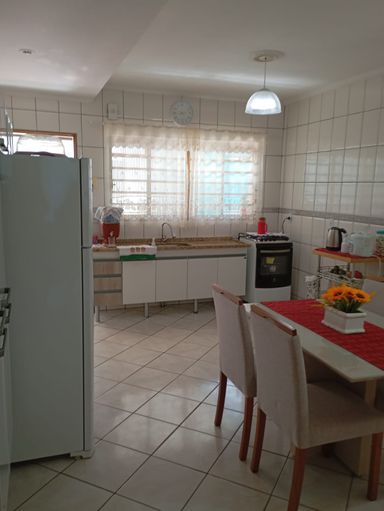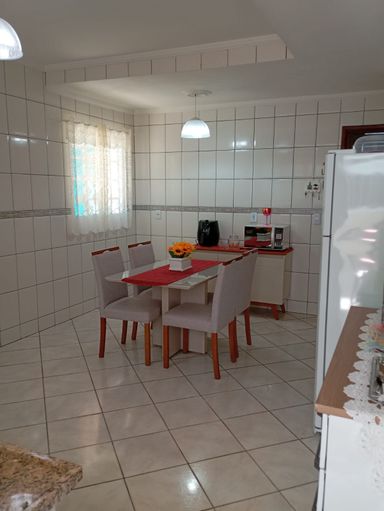 Contém 3 dormitórios, sendo 1 suíte, 3 banheiros sociais, sala e cozinha amplas, garagem coberta pra 2 veículos. Duas entradas, sendo uma por fora e outra por dentro da garagem.