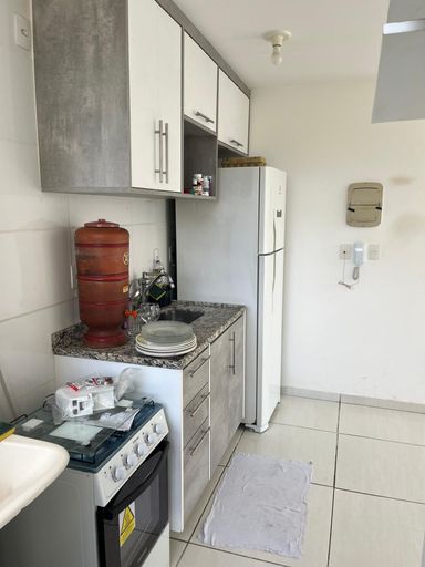 Contém 2 dormitórios, sala e cozinha conjugadas, cozinha com armário planejados, banheiro social com box, lavanderia coberta, elevador, garagem coberta para 1 veículo.