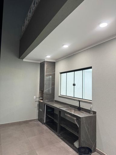 Contém 4 dormitórios sendo 1 suíte, sala de estar e sala de jantar, cozinha planejada com sanca e iluminação, banheiro social, lavanderia, área gourmet com churrasqueira, instalação hidráulica pronta para jacuzzi, garagem para 4 veículos.