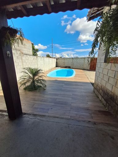 Contém 3 dormitórios, 2 banheiros, sala, cozinha, varanda com quintal e piscina.