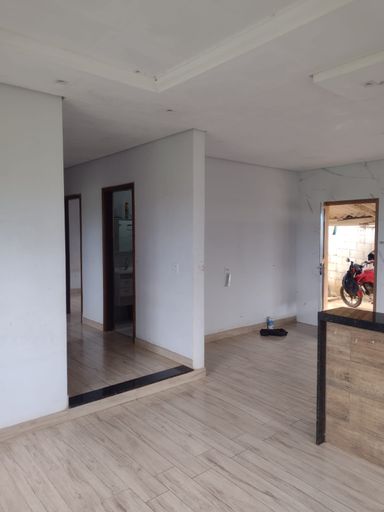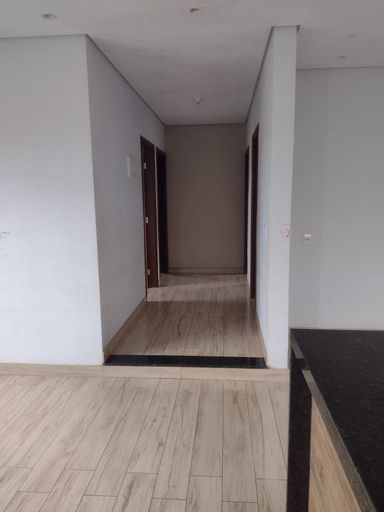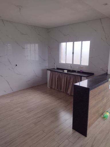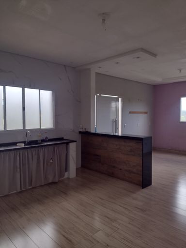 Contém 3 dormitórios, sala e cozinha americana, banheiro social, área construída de 82 m² na parte inferior.